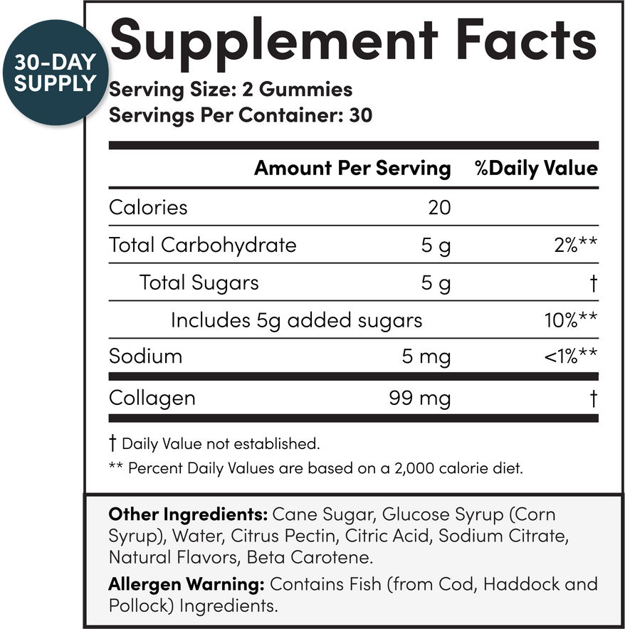 A significant decline in collagen production as early as our 30s, often leads to dry skin and forming wrinkles. JellyBee Collagen gummies are made of Type I Marine Collagen, which is more effective for joint and skin wellness than other collagen sources and effectively restore collagen levels in the body.